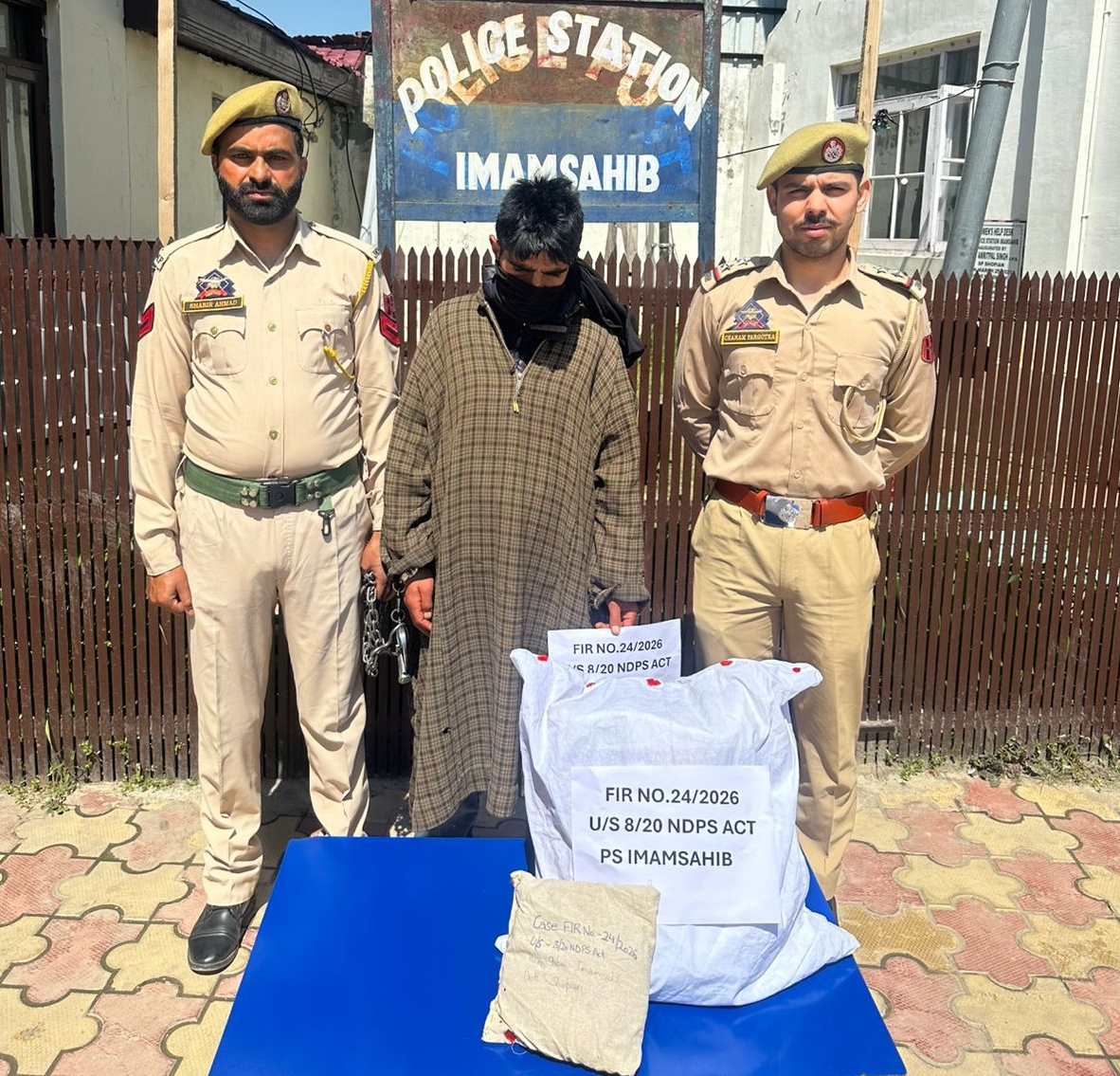 Shopian Police Arrest Drug Peddler, Recover 4.34 Kg Charas-like Substance