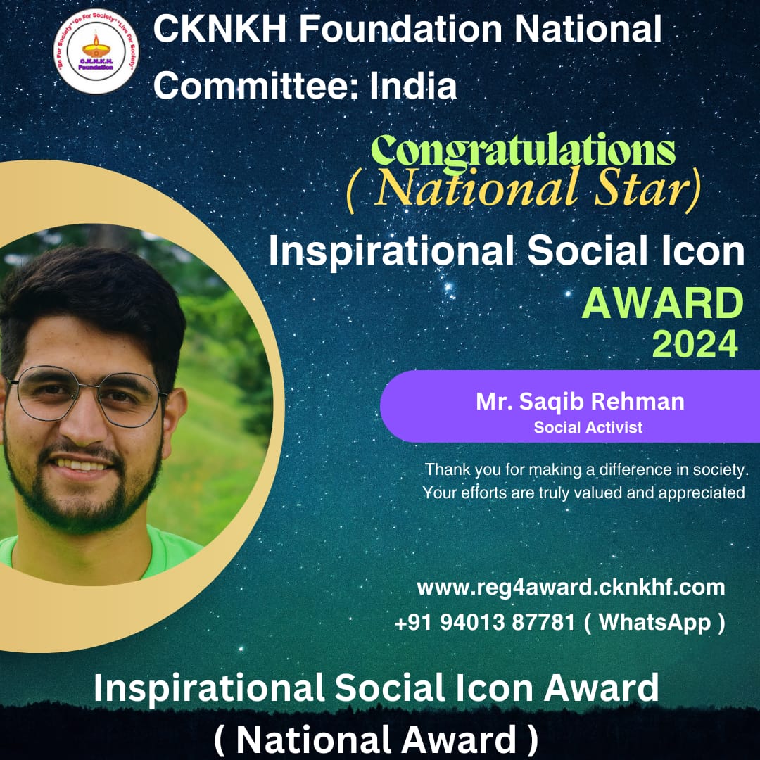 Shopian: Saqib Rehman, a renowned social activist from the Shopian district of Jammu and Kashmir, has been selected for the prestigious Inspirational Social Icon Award by the CKNKH Foundation National…